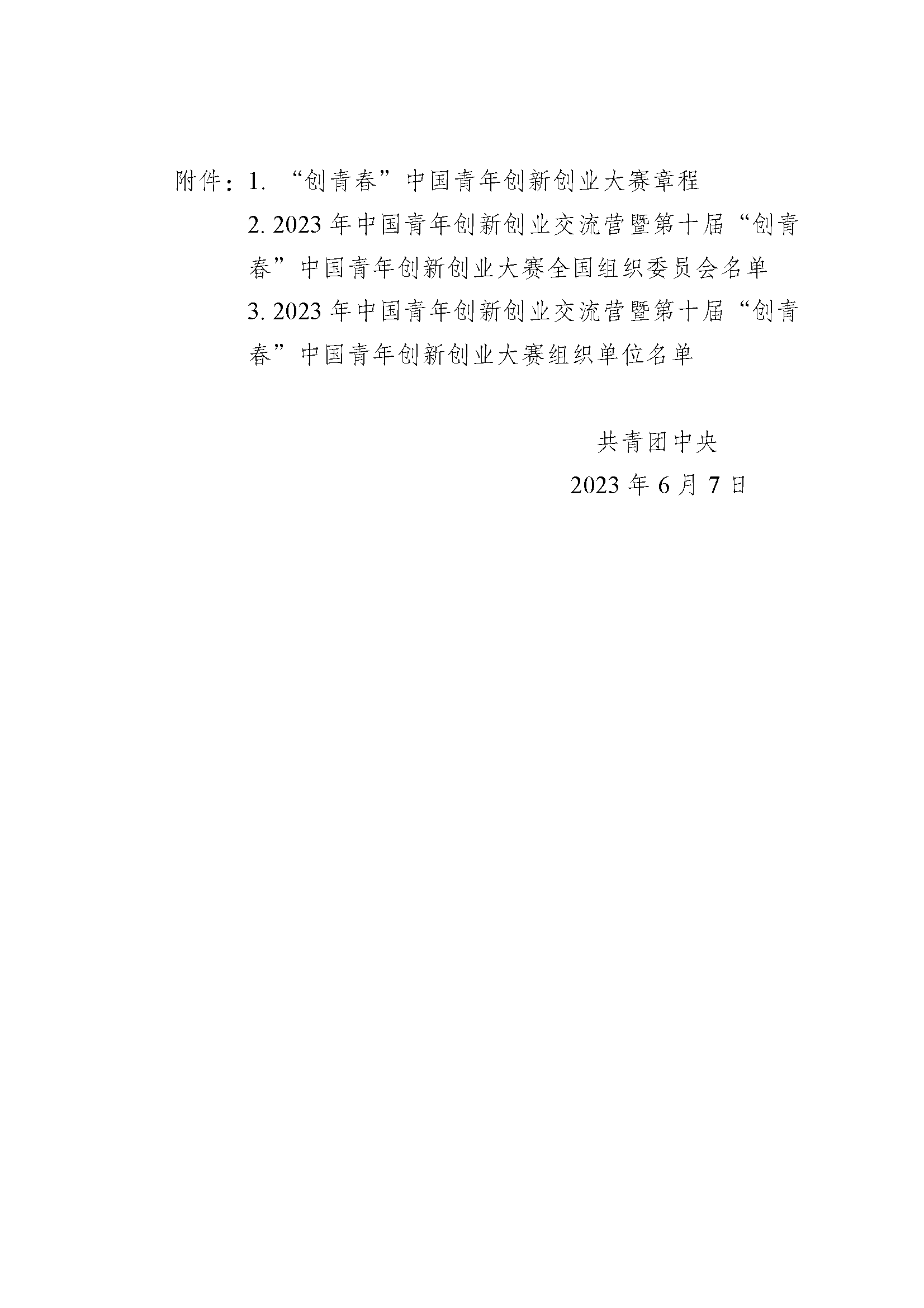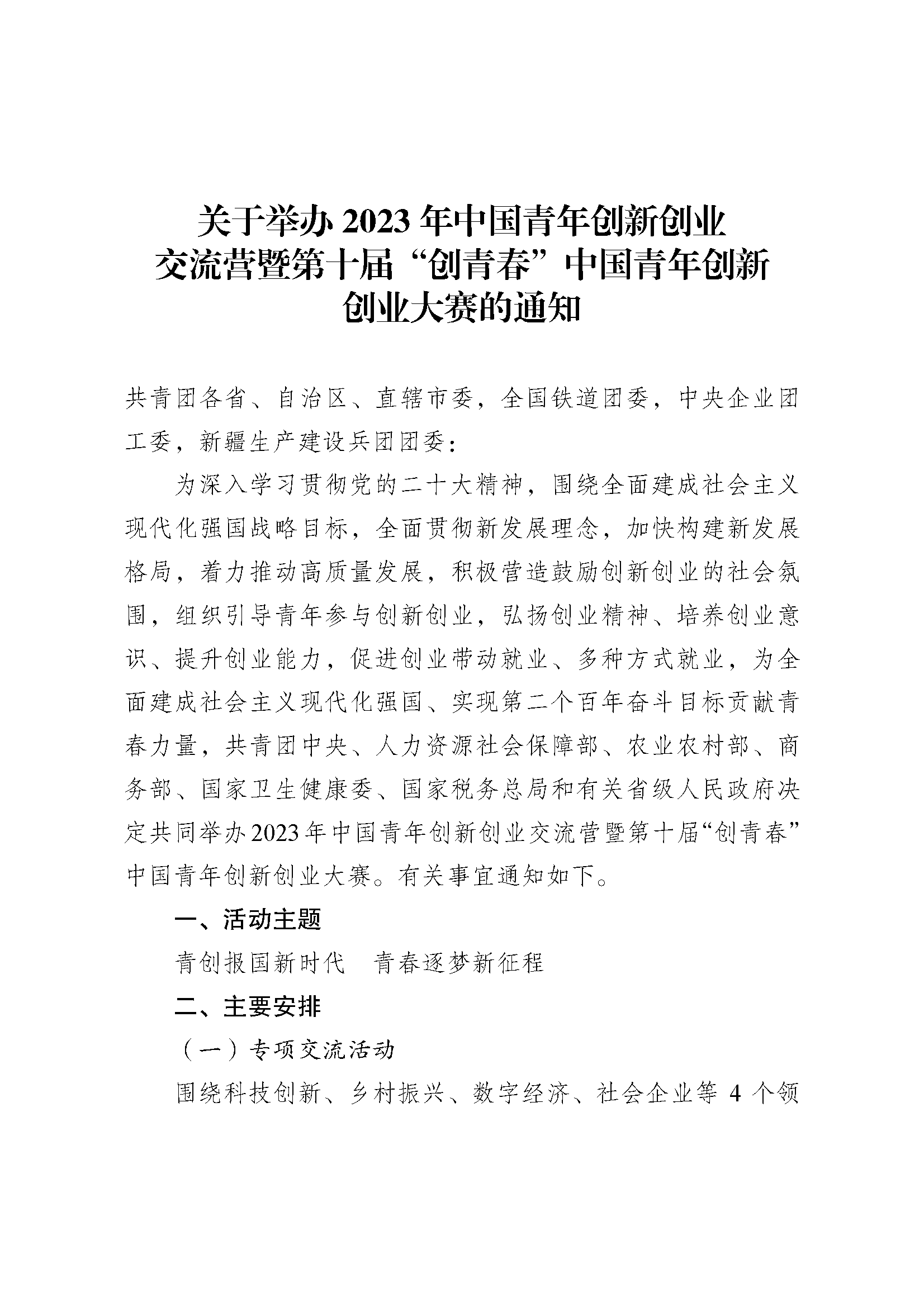 关于举办2023年中国青年创新创业交流营暨第十届“创青春”中国青年创新创业大赛的通知