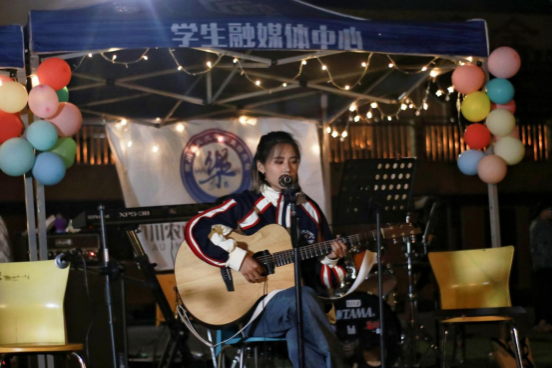 这是个不一般的夜晚,不同学院、不同专业的同学汇聚一堂,为所有人献上了一场场精彩绝伦的演出。和风四月,青春飞扬。星光闪烁的夜空下,坐在操场的草坪上,聆听着一首又一首歌谣,凉凉的微风变得柔和,激情的热血涌动全身,感受纯粹的鼓点与琴弦的碰撞,沉浸在音乐的世界,肆意呐喊着青春,动感时尚的节拍整场音乐会洋溢着如火一般燃烧的青春激情,在场观众如痴如醉。