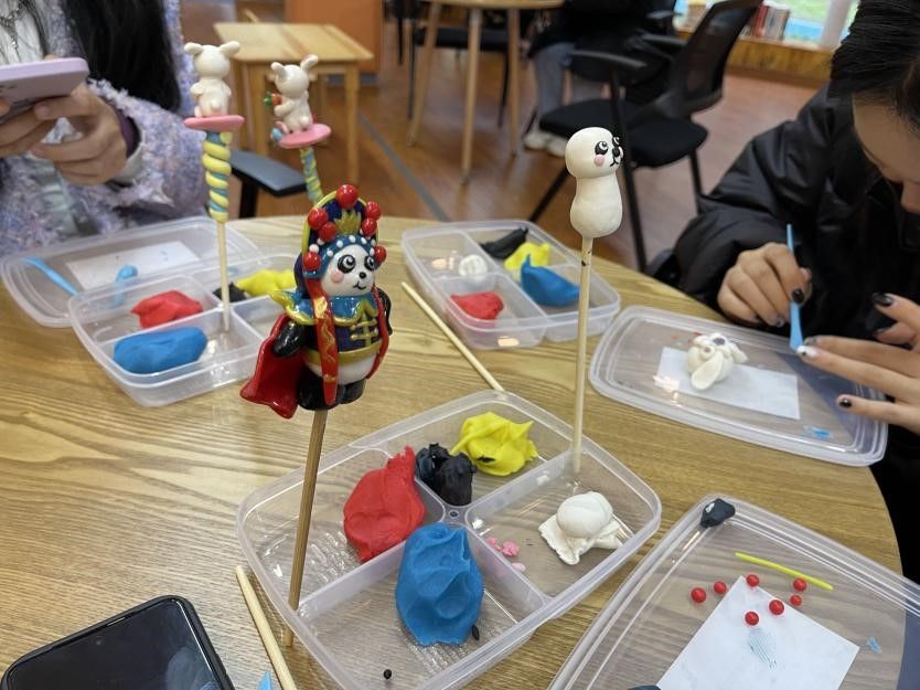 在都江堰市“古堰人家”面塑体验馆,近200名同学们实地参与体验七彩面塑玩偶制作活动,感受非物质传统文化的魅力所在。在体验馆老师引导下,同学们认真聆听面塑的发展历史和制作技艺讲解,积极参与制作各种各样有中华文化特色的面塑玩偶。“面塑上手快,只需掌握一印、二捏、三镶、四滚的技法,但要做到形神兼备却并非易事。”在老师指导下,同学们将面滚圆、捏合后制成人物脑袋、手、脚、衣服等各个部位,组装在一根木棍上,用小竹棍灵巧地刻画下装饰和图案,就可以得到一个可爱的面塑小人。整个过程看似简单,却需要极大的耐心与恒心,每个环节都需要细细打磨,才可以将面人塑造得精致动人。京剧形象的大熊猫、穿汉服的小姑娘、象征美好寓意的财神等几十个活灵活现的面塑在同学们手中接连成型。