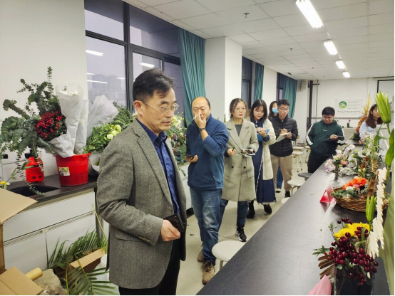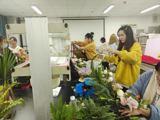 最后,所有完成的作品整齐陈列在教室中,由专业课教师潘远智教授、江明艳教授、姜贝贝教授、刘立光老师和杜鹃老师进行现场评分。评委老们从作品完成度,色彩搭配,花材形态,创意及作品内涵等方面对参赛作品进行了点评。最终评选出15只优秀队伍入围决赛,进行冠军的角逐。与此同时,本协会将会在微信公众号中发起大众投票,评选出“最佳人气作品”。