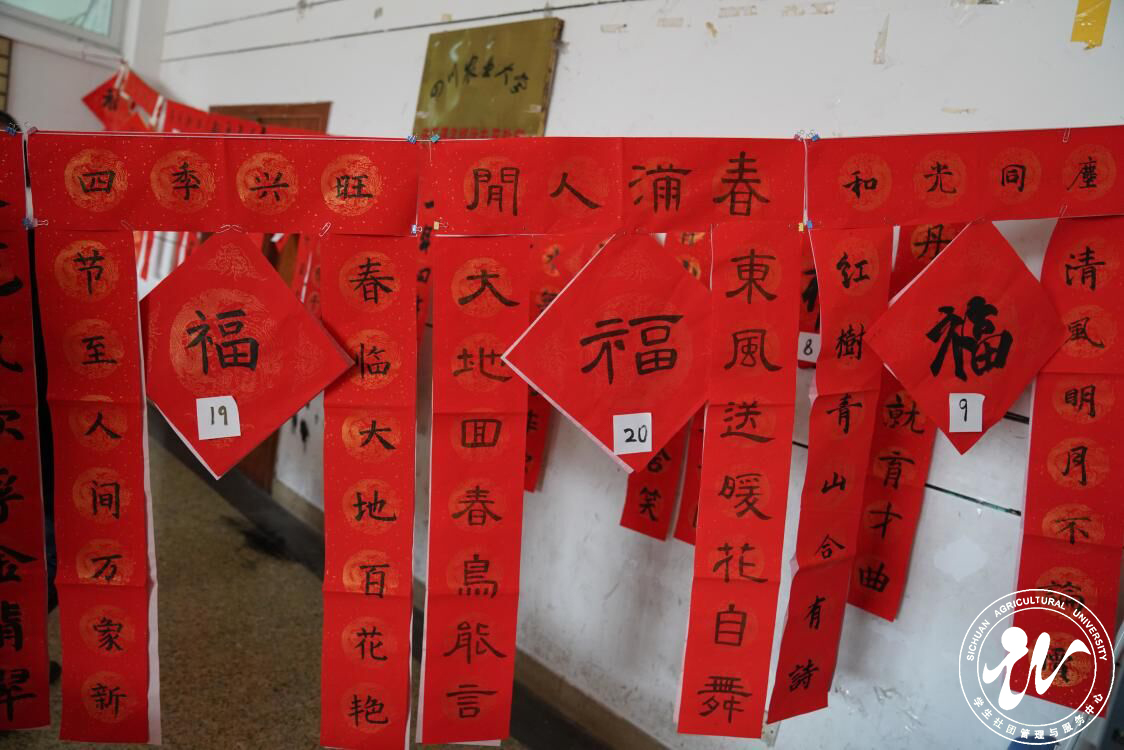 “红梅含苞傲冬雪,绿柳吐絮迎新春”“半盏屠苏尤未举,灯前小草写桃符”……12月20日,由学生社团管理与服务中心主办,学生书画协会协办的“笔墨对联,祝福新春”春联展于雅安校区新素二楼顺利举行,共吸引300余师生前往参与观看。