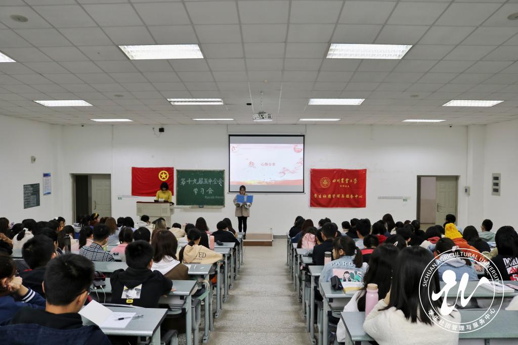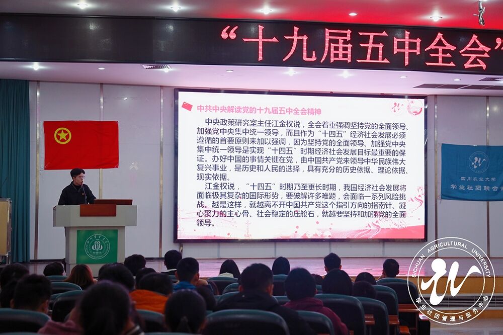 11月4日中午,学生社团管理与服务中心团学组织分别于成都校区4A106、雅安校区十教小礼堂开展“党的十九届五中全会精神”的主题学习,社服主席团、执委会及直属部门成员等共计300余人参与其中。