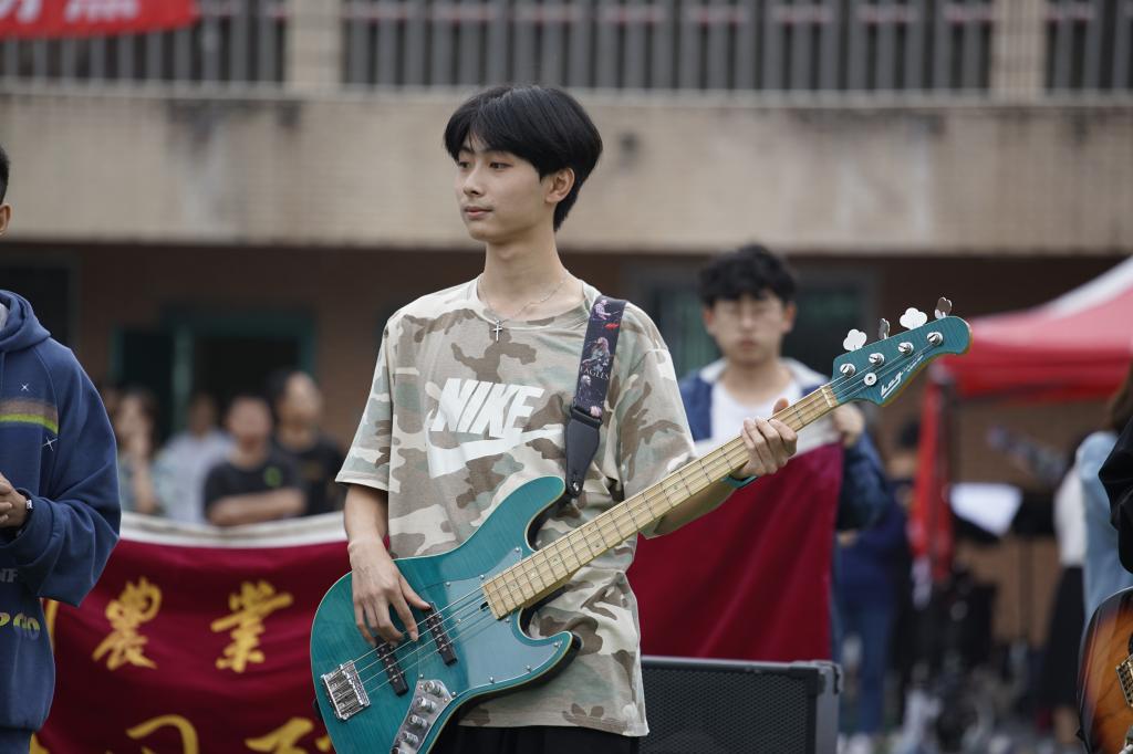 伴随着悠长动听的戏曲腔调,慰问演出以电声乐团与戏曲团共同表演的《凡人歌》拉开帷幕。随后,室内乐团与电声乐团合作的《全世界谁倾听你》和管乐团演出的《神隐》接连登台演出,让同学们眼前一亮、回味无穷。表演者用饱含激情的旋律演绎着青春的激情与活力,瞬间点燃了全场的热情。余音未散,曲风一转,颇具人气的吉他协会正式登台表演。他们用清脆悠扬的琴音,配合着浑厚有力的歌声,向每一位新生传递着吉他弹唱的独特魅力,取得了良好的互动效果。