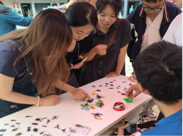 同时,各学生社团围绕社团工作及专业特色,设计丰富多彩的社团活动吸引同学们驻足参与。学生推理协会的解谜游戏如火如荼,参与者或沉思苦想,或群策群力,共同探寻谜题的真相;学生昆虫协会的“昆虫贴纸识别”帐篷前人头攒动,同学们手持放大镜,细心辨认每一张贴纸上的微小生物;学生武术协会则推出了“武术姿势模仿”游戏,吸引众多同学一展身手……趣味盎然的投壶、挑战口齿的英语绕口令、挥洒创意的妙笔生花、发挥想象力的黏土DIY等特色活动为同学们带来别具一格的活动体验。