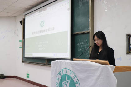 学生会主席团成员贾瑞在第二讲课程中,为新成员的大学生涯规划及未来发展提出全面的建议,从学业成绩、学生工作、志愿服务、创新创业等方面提出发展方向和切实可行的建议,帮助大家明晰学生本职定位,规划未来。