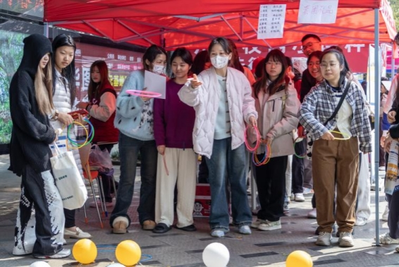 图为动物科技学院答题套圈活动现场