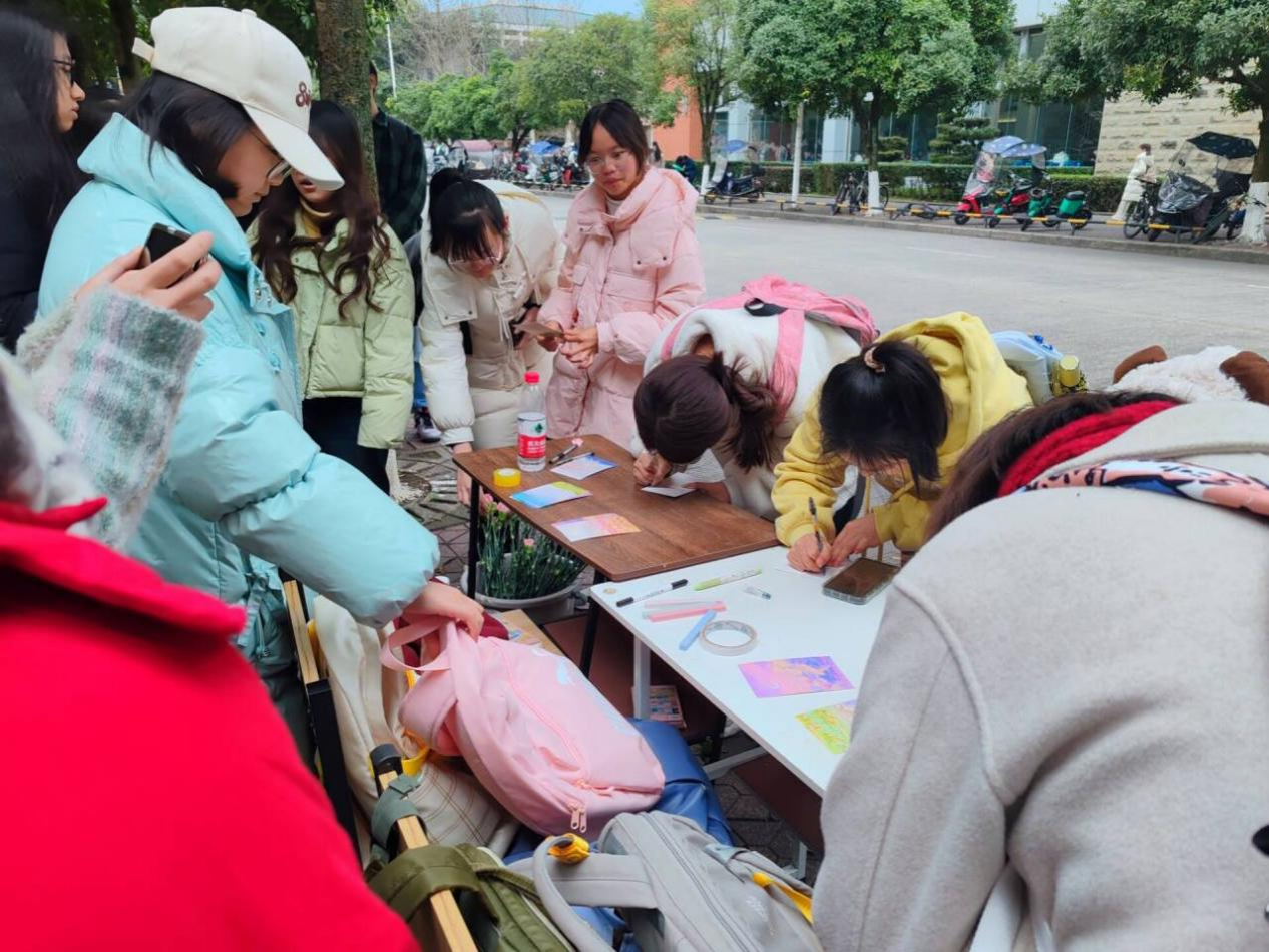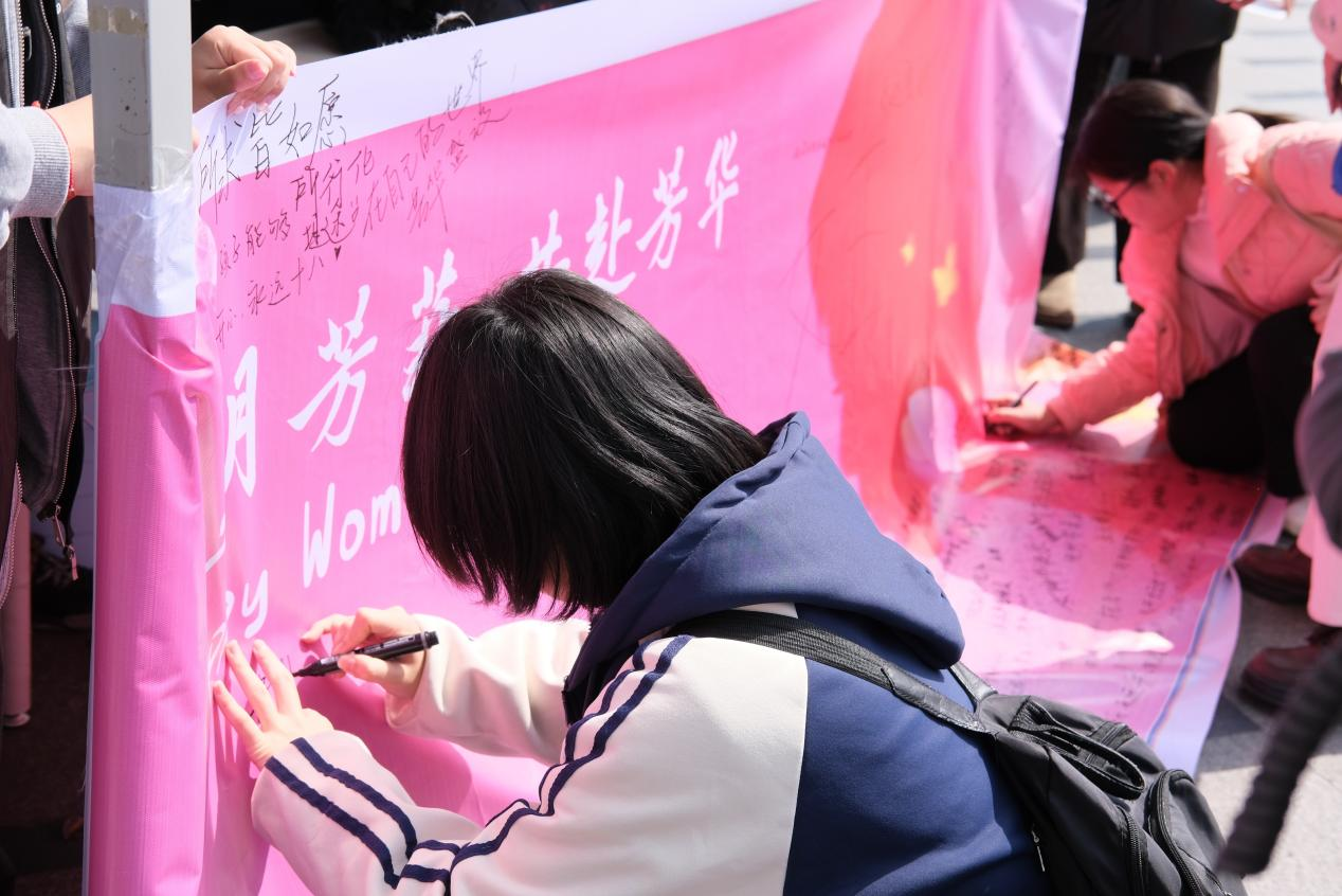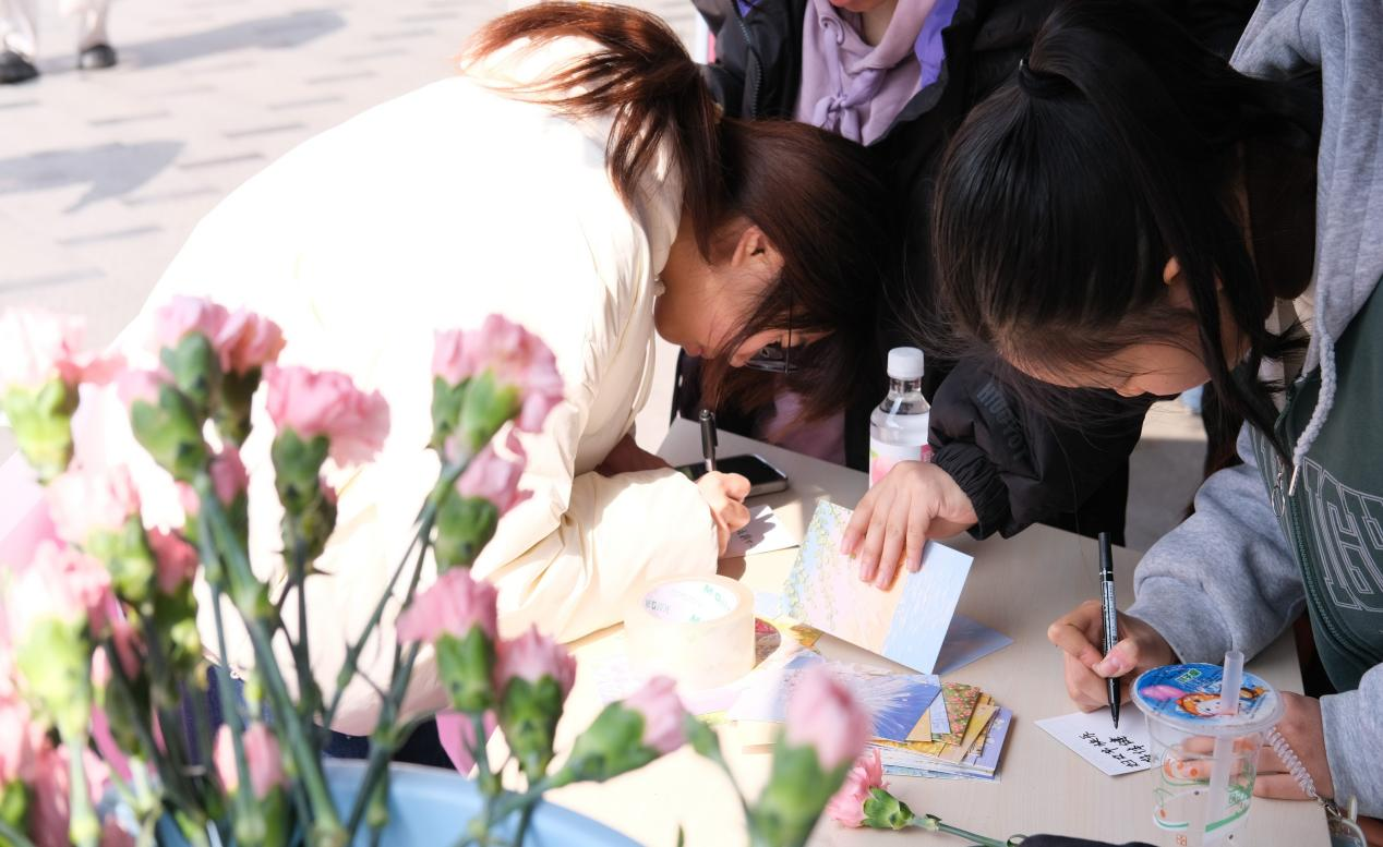 为更好的收集全校同学们对“她们”的祝福,3月7日,校学生会于三校区分别开展线下设点宣传活动,鼓励同学们在活动横幅和明信片上写下自己的祝福。“祝每一个‘她’都闪闪发光,拥有热辣滚烫的人生!”“愿每位女性如春日芳菲,绚烂绽放!”“感谢您们的辛勤付出,您们辛苦啦!”……同学们纷纷在明信片中抒发自己对于全体女性的敬意与感激,亲自感受妇女节的价值与意义,将温暖与祝福传递给每一个“她”。