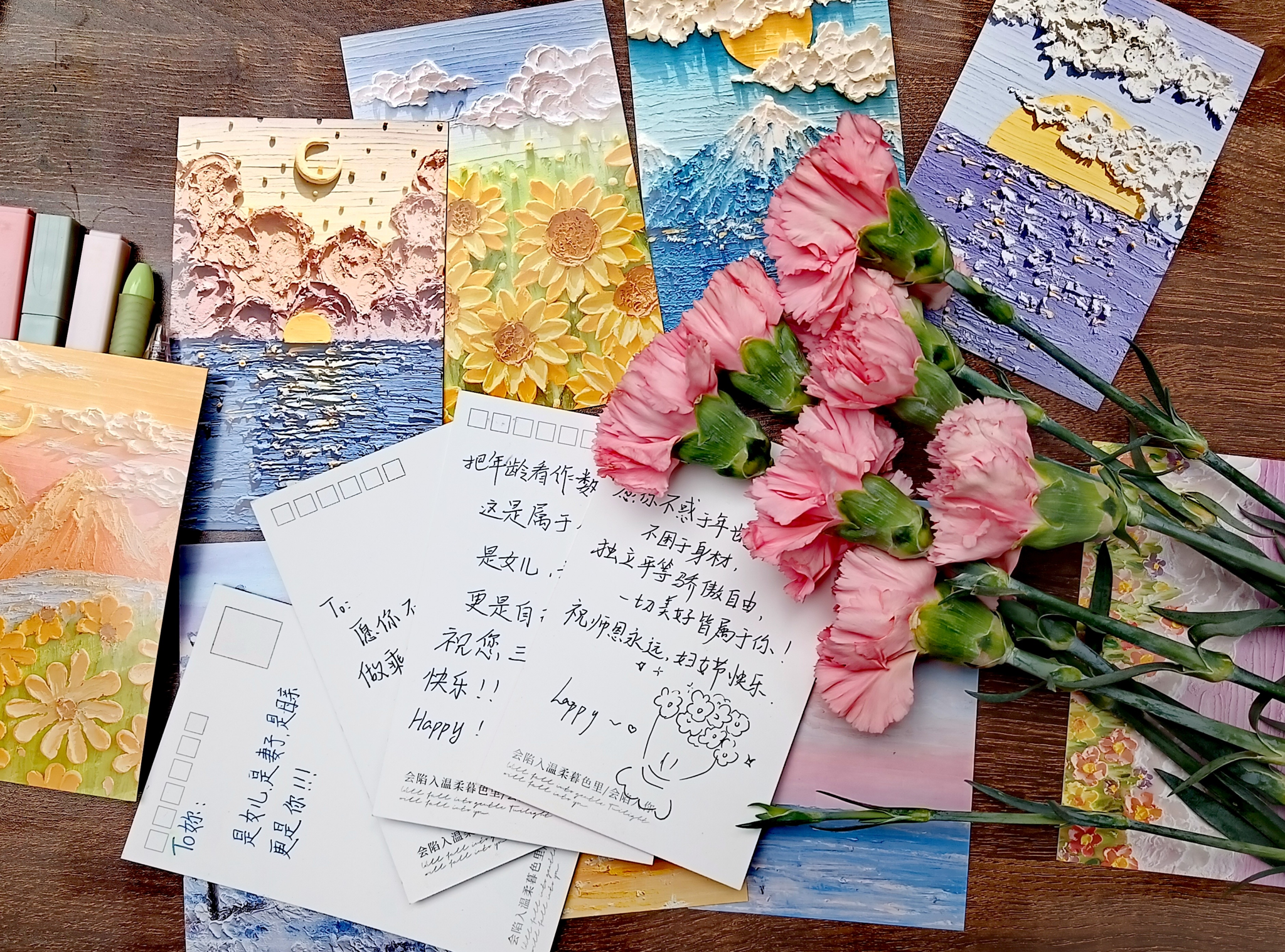 图为同学们在明信片上书写对全校女性教职工的祝福