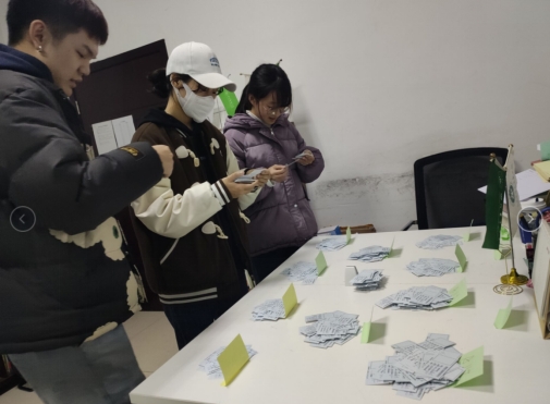 为确保分配工作公平公正,校学生会首次采取面向全校同学线上直播座位抽签。公开抽签MATLAB源代码、双机位全过程直播,1026个座位在五千多名线上观众和学生代表大会常代表的监督下完成抽签。清理遗留物品,1200余个提醒电话,1500余条短信,校学生会工作人员将全心全意服务同学融入耐心细致的座位分配工作中。