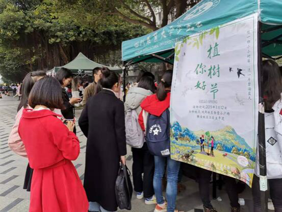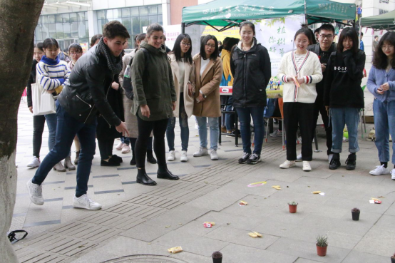 “请问植树节是为了纪念哪一位伟人?”“当然是孙中山啦!”“请问植树节在哪一年被正式确立?”“是1979年!。”接二连三的问题难不倒答题同学,线下活动以环保知识问答的方式,让同学们熟悉植树节的内涵精神和环境保护相关知识的同时,还能够赢取精美小绿植,为寝室增添一丝绿意。同时,活动还吸引到了一些留学生们前来参与,在成都校区的活动现场,一位留学生成功获得了多肉盆栽,并且得到了工作人员送出的植物种子。在离开时,他们用中文表达了谢意。