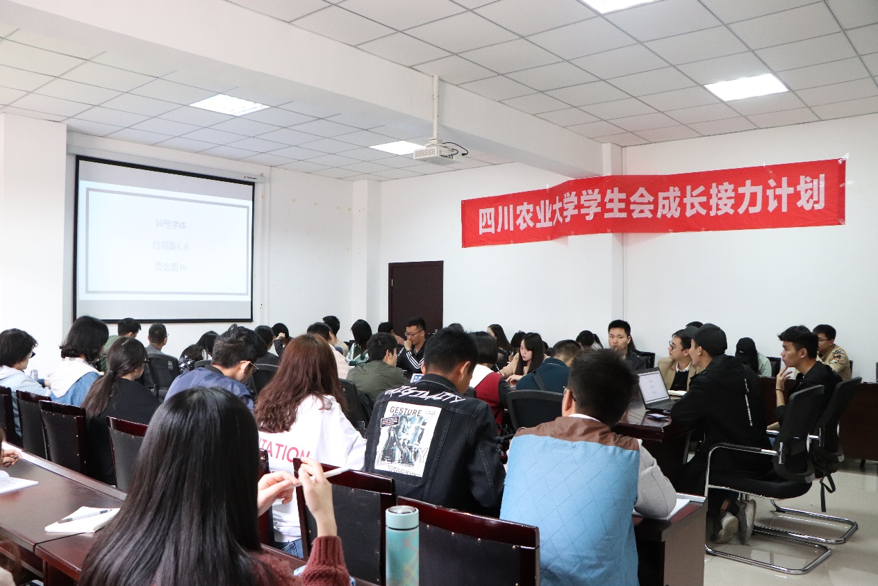 3月23日中午,为紧跟时代发展潮流,加大干部培养力度,推动学生工作长久、高效发展,加强校学生会、研究生会的交流与合作,结合工作实际,校学生会于雅安校区第四行政楼组织开展了干部成长接力计划—新媒体运营培训。各职能部门(室)学生干部及研究生会十余名代表参加培训。宣传部常务副部长胡阳担任主讲人。