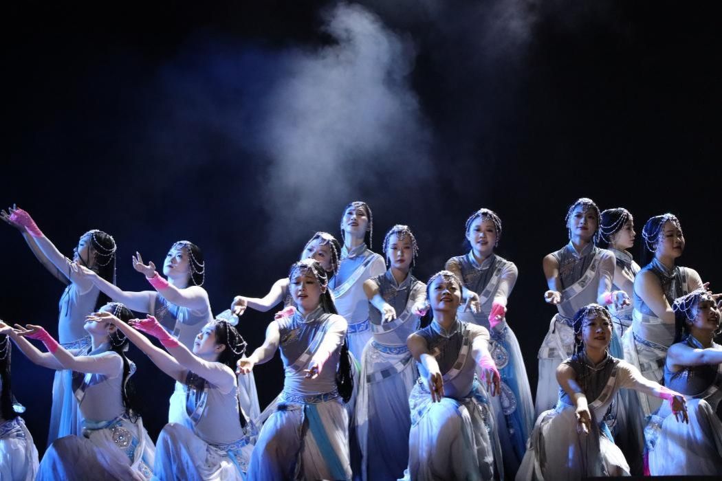 本次专场集合三校区舞蹈团排演的优秀作品,以“天地人”为脉络,将诗词与舞蹈融合,引领观众通过舞蹈美学视角在中华优秀传统文化中感受时光流转的生命意境。中国古典舞篇章,“天时·星辰流转”带来一幅穿越古今的文化星宿图。群舞《醉春风》《浔山行》《从来银杏不负秋》和《唐印》以俏皮的嬉闹和轻盈的舞步演绎明媚春景与深秋叶落,将古典舞的静谧与洒脱绝美呈现。民族民间舞篇章,“地载·山河印记”犹如一幅绚丽多彩的民族风情长卷。傣族舞《心地》,藏族舞《天浴》,维吾尔族舞《鼓声响起的地方》,彝族舞《蝴蝶》,蒙古族舞《走进光里》和民族串烧《盛世华章》用极具感染力的舞台表现力,生动演绎出各民族在广袤山河大地上的生活百态。现当代舞篇章,“人和·岁月如歌”则涌动着时代的脉搏与人间温情。《一袭龙井香》《我的妈妈叫桂梅》《雨花石的等待》以叙事为主体,讲述人生长河中情感追求与精神守望,感悟岁月赋予生命的厚重与温暖。