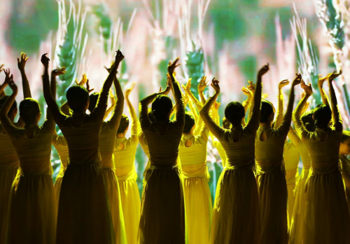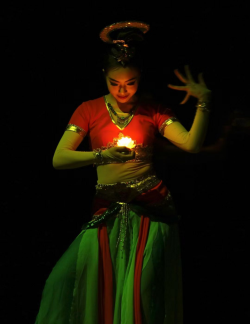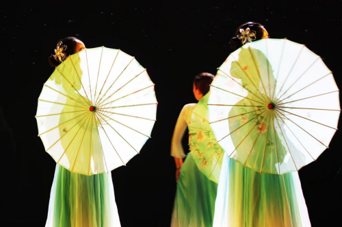 本次舞蹈专场分别以中国传统色“缃叶”、“西子”、“狼烟”、“酡颜”为四幕名称,通过古代、民国、现代三位画家的画笔描绘为主线,串联起不同时代背景下的人文艺术、社会百态。伴随着动人的音乐,古代画家王希孟描绘出一幅壮丽的《千里江山图》,引人“入画”拉开演出序幕。第一幕中,龟兹舞蹈《远古的呼唤》演绎西域女子为士兵送去希望与光明的故事;芭蕾舞《我们的田野》拟态风吹麦浪,展现劳动人民丰收喜悦之情。第二幕中,《同簪》强烈对比了青白蛇幻化人形时的俏皮可爱与展露蛇形后的妩媚飒爽;古典舞《雨涧春行图》带领观众雨中撑伞行,领略烟雨江南之美;古典舞《茉莉芬芳》则以“五四运动”为背景,以物喻人,展现恰同学少年风华正茂之姿;古典舞《碇步桥水清悠悠》完美再现了碇步桥的古朴韵味,展现了一群女子踏石而行的悠然和怅惘之情。第三幕中,现当代舞蹈《永不消逝的电波》《风声》演绎抗战时期地下党情报传递工作的紧张与危险;现当代舞蹈《1937》以长篇小说《金陵十三钗》为背景,展现一群风尘女子以“中国人”信念为支撑,慷慨赴死的救国救民之情。第四幕中,《远山不远》以一对教师夫妇扎根藏族地区,陪伴藏区儿童的真实事迹为原型,演绎两人共同支边支教的动人故事。演出尾声,民族舞《锦绣民族图》通过藏族、傣族、维吾尔族、蒙古族舞蹈的轮流展示,把各民族团结友爱、一片欢庆祥和的气氛烘托到极致。随着音乐旋转起舞,灯光所及之处,舞者曼妙灵动的舞姿、生动饱满的情绪调动了观众的热情。