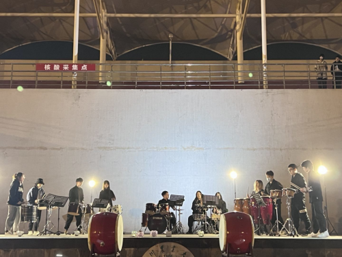 11月20号晚,由校团委主办、大学生艺术团打击乐团承办的“让艺术在身边发生”音乐沙龙在成都校区操场举行。近半小时的精彩演奏给夜间的操场带来不同于往日的艺术气息,也为在操场驻足的观众带来了一场震撼的音乐体验。