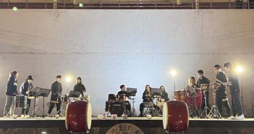 11月20号晚,由校团委主办、大学生艺术团打击乐团承办的“让艺术在身边发生”音乐沙龙在成都校区操场举行。近半小时的精彩演奏给夜间的操场带来不同于往日的艺术气息,也为在操场驻足的观众带来了一场震撼的音乐体验。