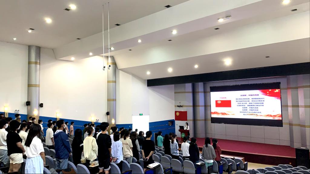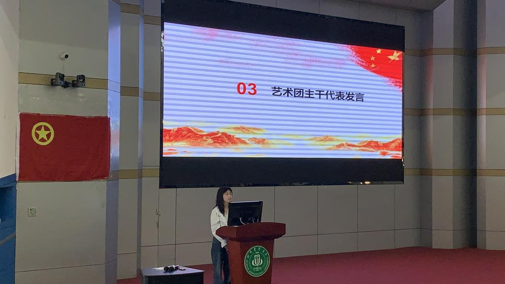紧接着播放了《青马学员讲党史小故事》第一期与五四MV《有我》等学习视频,艺术团同学也结合学习内容表演了朗诵、演唱等节目,丰富了学习形式的多样性。