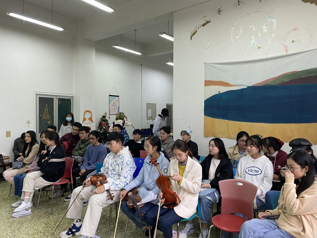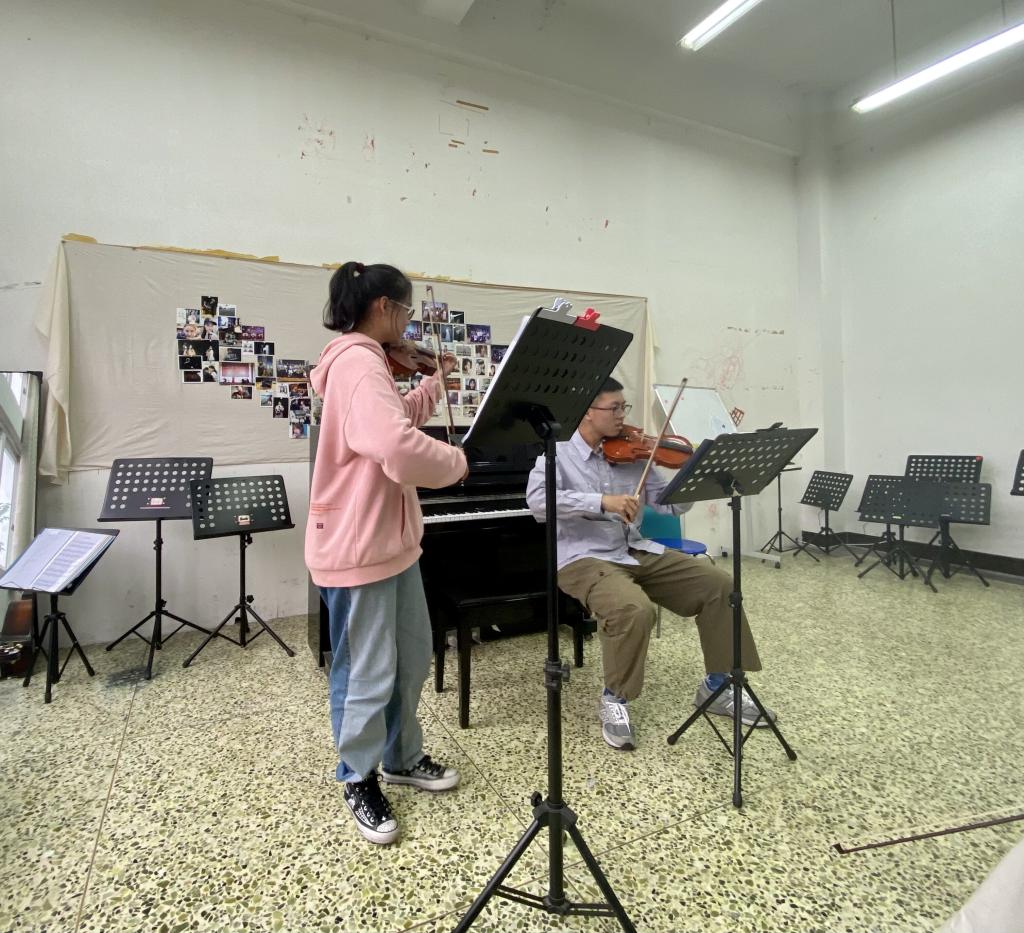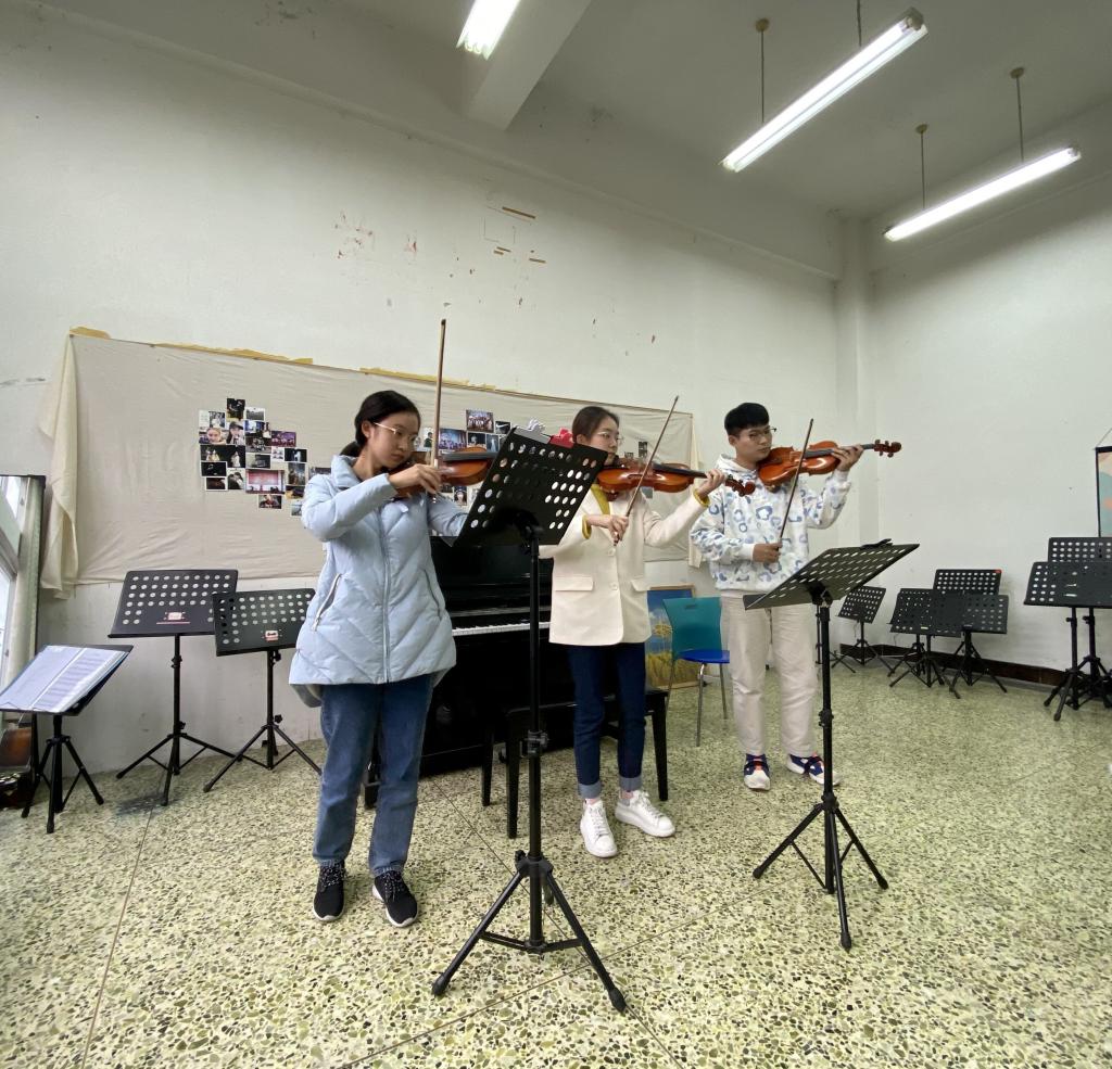 本次考核分为键盘组考核和弦乐组考核,综合试用期内新生的态度、出勤、基本功、练琴质量等多方面进行考核。室内乐团不是个只看重表演水准的乐团,它拥有自己的建设、发展体系和包容度,在这里实力不是唯一,态度同样重要。因此,室内乐团根据新生不同情况灵活调整考核方式,不同乐器也有不同的考核方式,如对转声部的同学考察最基础的练习,对小提琴组的同学考核克莱采尔练习曲和近期排练的“银杏之声”比赛曲目,对钢琴组的同学考核肖邦夜曲及音阶、琶音等基本功,对吉他组同学考察自选曲目等。