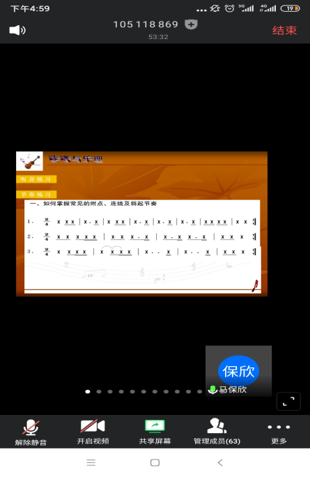 截止目前,我校学生交响乐团通过腾讯会议软件,已开展14课时教学,并且为保障学习的高效性,课程安排采取各个声部单独上课。