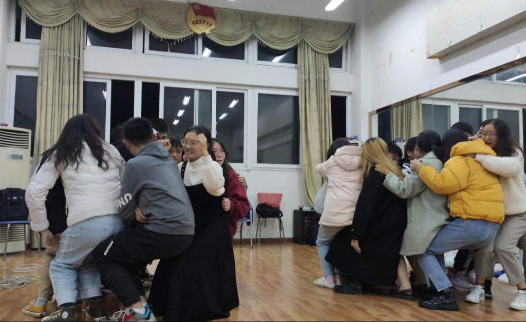 11月20日21:30,大学生艺术团播音主持中心(雅安)素质拓展活动在老区素质文化中心排练厅顺利举行。播音主持中心全体成员参与了本次素质拓展活动。