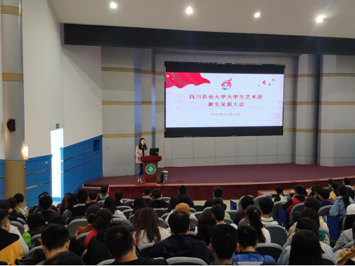2019年10月18日中午、22日中午,太阳集团tyc86大学生艺术团分别在在成都校区四教A区202教室以及雅安校区逸夫楼小礼堂举行了太阳集团tyc86大学生艺术团2019级新生见面大会,校团委艺术团指导老师、艺术团主干以及各分团新生代表共600余名同学参加了此次见面会。见面会共分为两个阶段,第一阶段是全体新成员见面会,第二阶段是各分团与分管指导老师的见面会。全体新成员见面会历时40分钟,由大学生艺术团主席团团长徐涓涓、主席团执行团长梁王壮同学主持人,由校团委文化艺术中心主任岳俊岐、校团委办公一室主任陈明滟、校团委办公一室副主任王璐以及校团委文化艺术中心副主任李莹分别介绍了艺术团概况、分团情况、规章制度、团内评优评奖及文艺骨干推免等相关政策并对新成员提出要端正积极主动地学习态度、坚持勤奋刻苦的不懈练习、葆有热爱艺术的热忱初心三个方面的具体要求。
