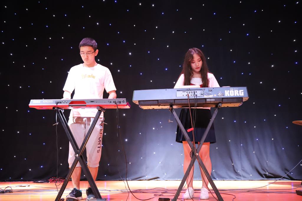 演出在动感活力的现代舞中拉开帷幕,主唱欧甜携一首《潇洒小姐》点燃全场。紧接着,邱姝鋆带来一首《Rolling in the deep》,她的嗓音浑厚、高音嘹亮,在不紧不慢的节奏中一点一点直击观众灵魂。抒情歌《戒烟》、《重来》和《慢慢喜欢你》将毕业时淡淡的哀伤藏于动听的歌声中娓娓道来。改编版《东西》,男生自主创作的说唱中还带有藏头词,一男一女台上默契十足,精彩合唱带来惊喜连连。“管你什么想法,我是我自己的表达”,《我管你》歌声铿锵有力,将摇滚式的嘶吼呐喊与电吉他、贝斯、电子琴等乐器一起将现场氛围不断点爆,全场大合唱的声音响彻新素,将毕业的感伤基调又拉回奔向新起点的充满希冀的氛围中来。下一首《光年之外》欧甜气场全开,狂彪高音,激动人心,一曲唱罢现场观众久久不能平静,大喊她的名字,将整场演出推向了高潮。