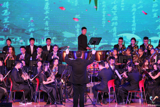 对中西音乐的融合则是本次音乐会的另一个亮点。《节奏序曲》将中西打击乐器同台登场,西洋钢片琴和民族竹笛相互配合,奏出一篇欢乐的旋律;《花溪河边的垂柳》本是我国的一首民族乐曲,通过西洋管乐的再次演奏,更为壮阔而深刻地展现了生命的美丽和春天的生机盎然;盲人阿炳的代表作《二泉映月》本是二胡独奏,管乐版《二泉映月》不仅体现出的是原有的深邃意境,更加壮丽地展现了一位盲艺人的百味人生;最后,返场曲目将《采茶舞曲》和《拉德斯基进行曲》这两首分别来自中外的名曲糅合在一起,观众们随着旋律一起拍打出节奏,将整个表演推向最高潮。